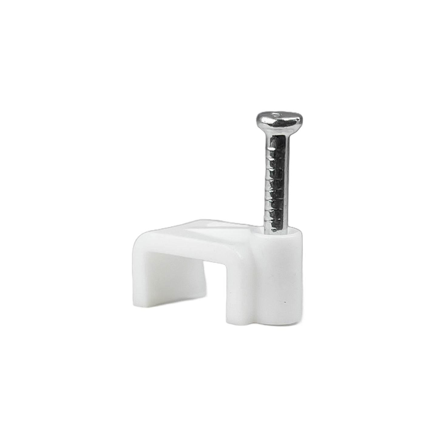 Fabricada en acero con recubrimiento resistente. Ideal para fijar cables a superficies planas.