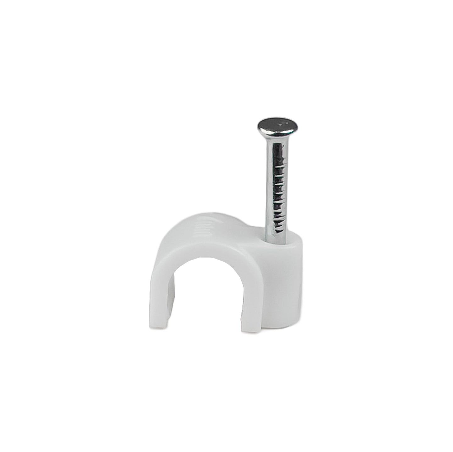 Sujetadores Plásticos con clavo de acero, Diseñadas para fijar cables o tuber‚Äôas a superficies de concreto o mamposter‚Äôa, asegurando una instalación ordenada y resistente.