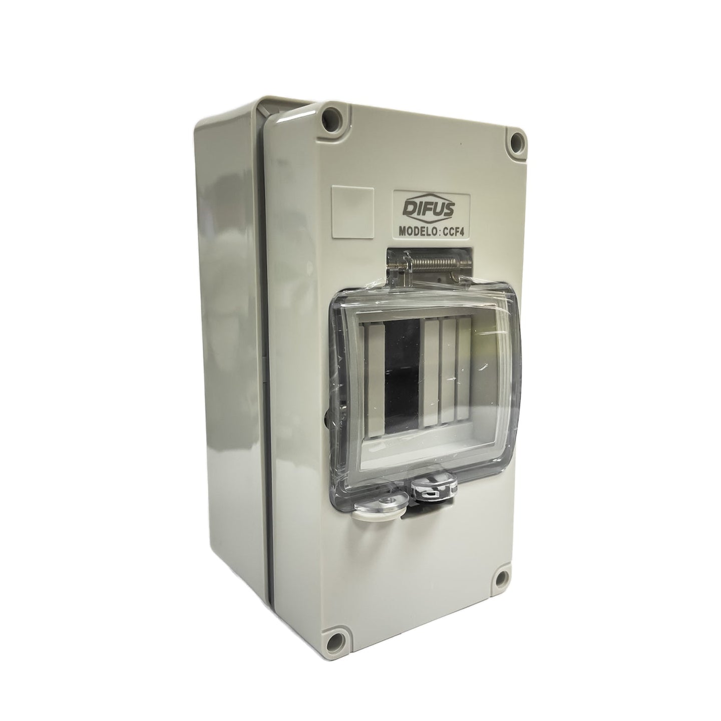 Para intemperie, 2 polos, Diseñado para alojar interruptores termomagnéticos modulares en instalaciones exteriores. Fabricado en Plástico o policarbonato resistente a la intemperie, con protección contra humedad, polvo y rayos UV. Ideal para aplicaciones residenciales o comerciales, brinda seguridad, durabilidad y f‚İcil montaje sobre riel DIN.