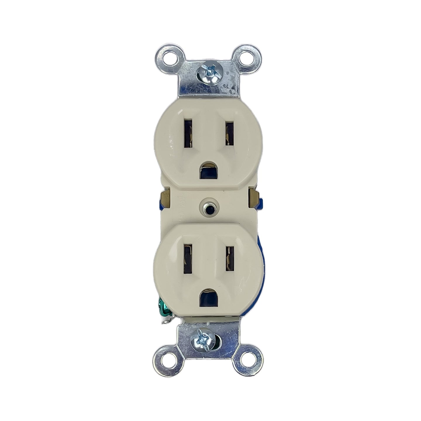 Contacto de sobreponer doble aterrizado, Diseñado para instalación superficial f‚İcil y r‚İpida. Soporta 15A a 125V~ 60 Hz, con conexi‚Äîn a tierra para mayor seguridad. Ideal para aplicaciones residenciales y comerciales que requieren versatilidad y protección.