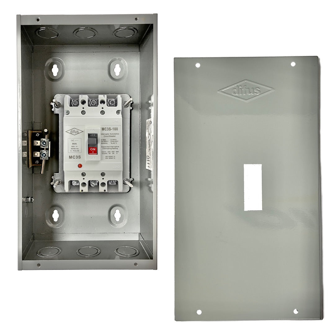 Diseñado para montaje superficial en muros o estructuras, ideal para proteger circuitos trifásicos en instalaciones industriales o comerciales. Fabricado en material resistente a impactos y condiciones ambientales, ofrece f‚İcil acceso para operaci‚Äîn y mantenimiento, garantizando seguridad contra sobrecargas y cortocircuitos.